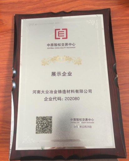 河南大業(yè)冶金鑄造材料有限公司2017年12月中原股權交易中心掛牌